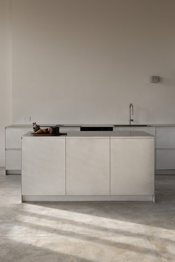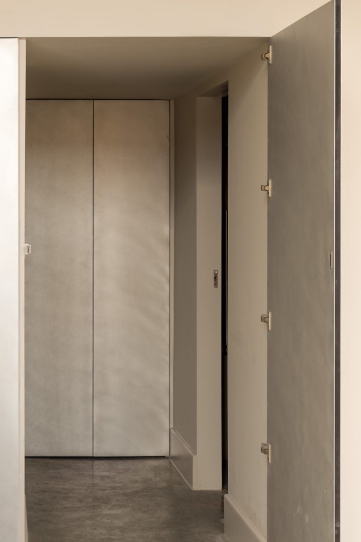 This project extends beyond individual rooms, approaching the apartment as a continuous spatial sequence shaped by light, proportion, and material restraint. Rather than introducing overt gestures, the project focuses on refining the existing structure, allowing concrete, plaster, and bespoke joinery to coexist with clarity and purpose.